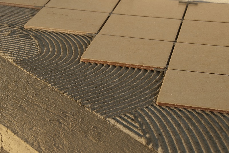 - Trộn keo theo tỷ lệ của nhà sản xuất hướng dẫn, kiểm tra độ phẳng của mặt bằng. Khi lát đá, rải lớp keo cần dày từ 3 – 6 mm với dụng cụ chuyên dụng.